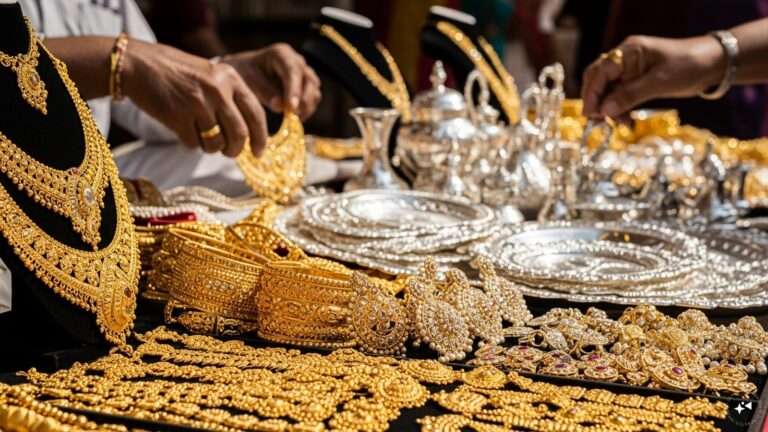 Gold and silver prices fell in India, tracking weak global bullion as firm crude oil fuels inflation and higher rate expectations, with analysts seeing range bound trade ahead.